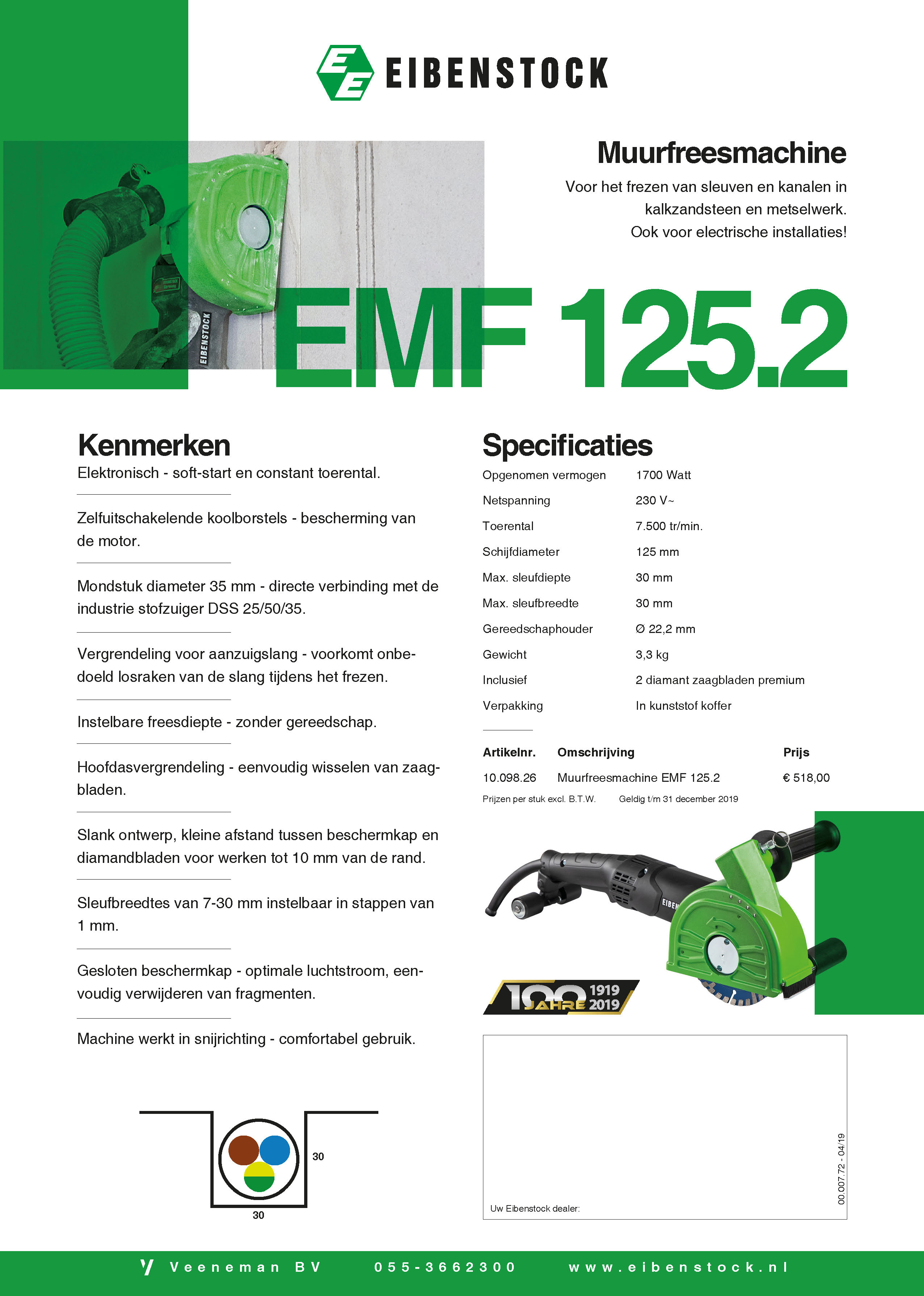 Voor het frezen van sleuven en kanalen in kalkzandsteen en metselwerk. Ook voor elektrische installaties.